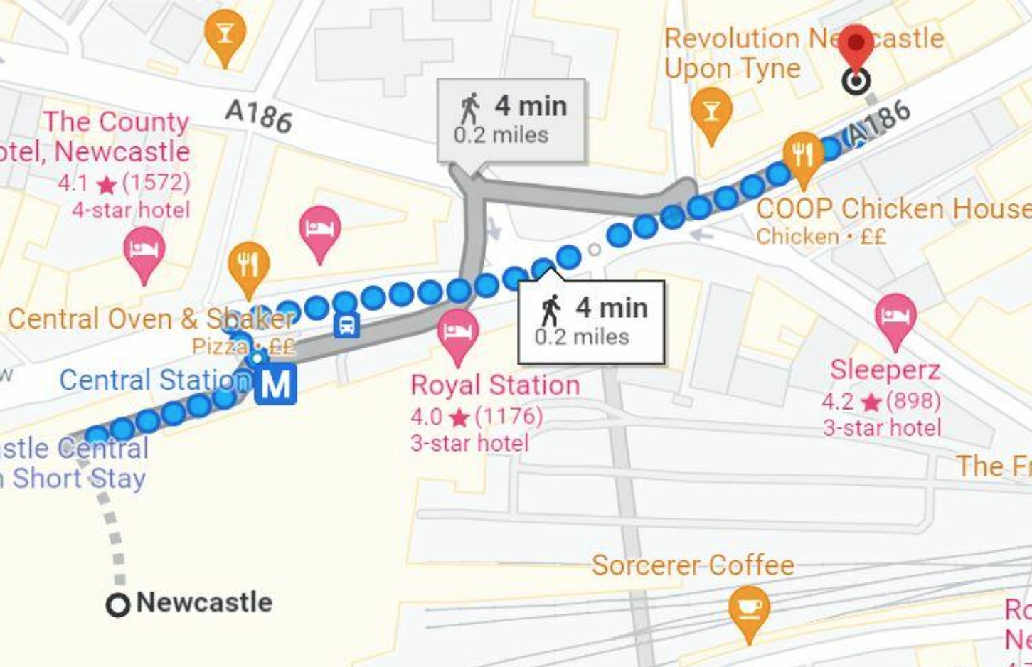 - Eldon and Haymarket Bus Stations - 15 minute walk